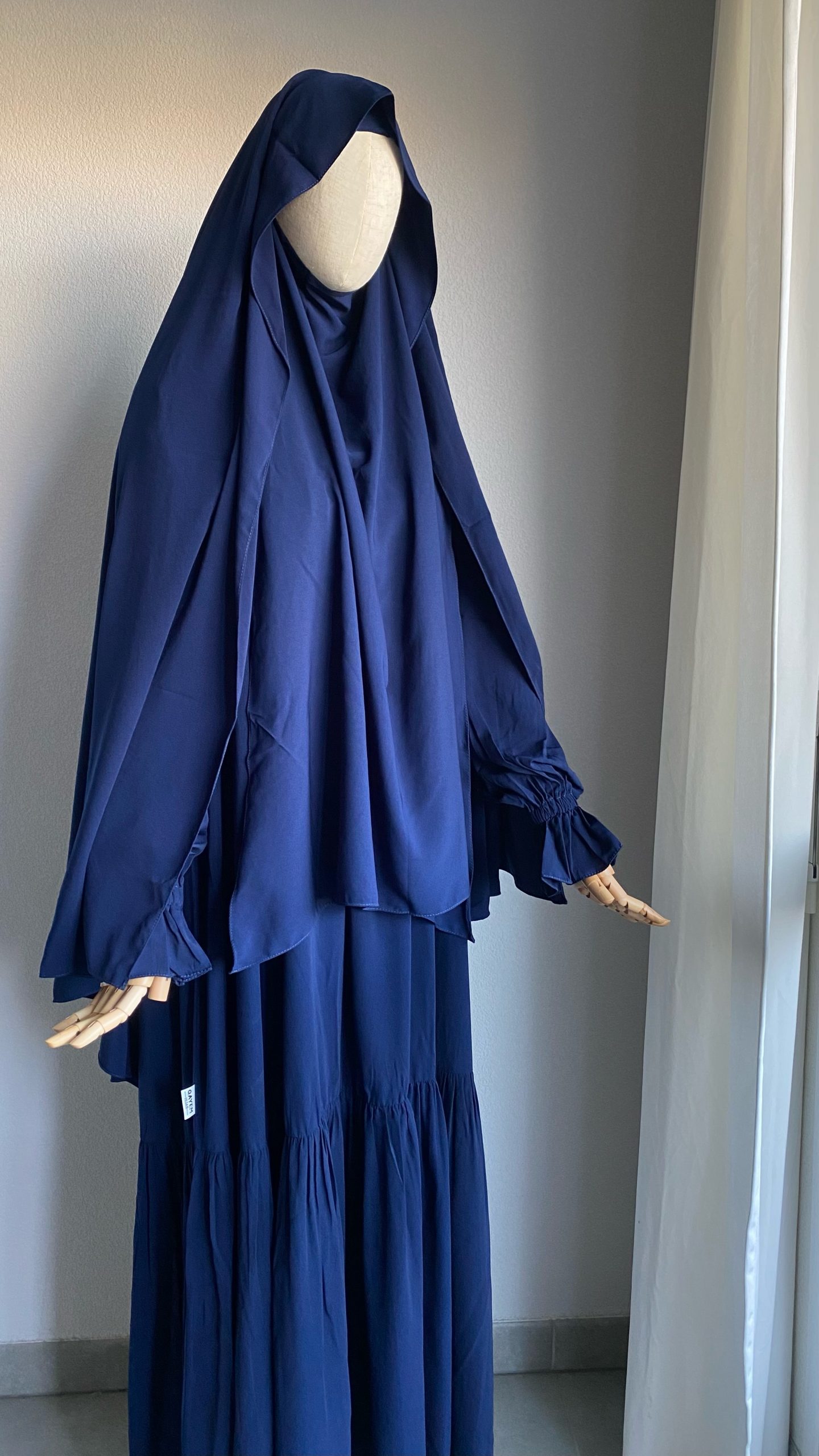 L’ensemble AMEERA qui se compose d’un khimar option niqab et casquette, d’une abaya option allaitement !