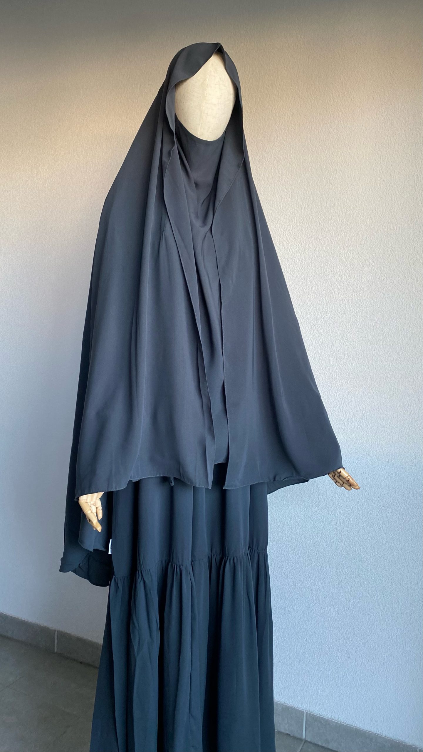 L’ensemble AMEERA qui se compose d’un khimar option niqab et casquette, d’une abaya option allaitement !
